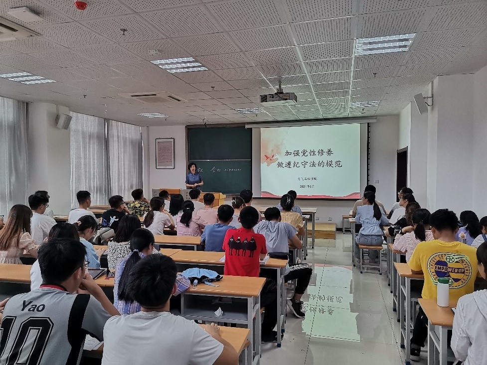 为推动党史教育学习深入人心,扎实做好党史学习教育专题学习工作,6月7日下午,党委书记李虹开展以“加强党性修养,做遵纪守法的模范”为主题的党课讲授,研2041班、研2042班党支部及本学期全体新发展党员参加学习。