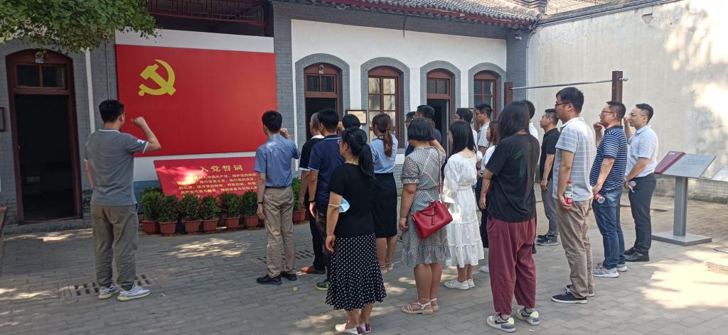 参观完纪念馆,全体党员在行政党支部书记巩晶骐领誓下重温入党誓词,面对党旗庄严宣誓。