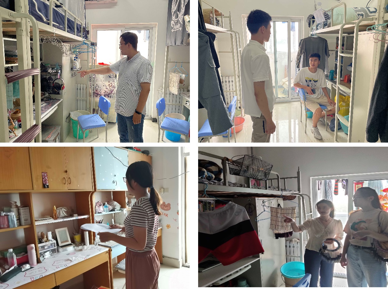 本次检查的重点是宿舍是否存在违规用电(私拉乱接)现象,是否存在违规使用大功率电器现象;宿舍内防盗、防火等设施、设备是否存在安全隐患;各辅导员提醒留校员工遵守宿舍管理规定并按时填写“疫情通”,通过“今日校园”上报体温。