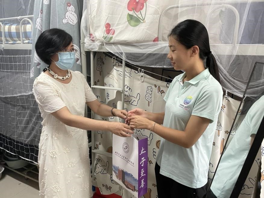 为了全力助力十四运的顺利开幕,做好公司十四运开幕式员工演员的各项保障工作,8月10日下午,银河集团官网银河集团官网但凡委书记李虹、银河集团官网银河集团官网但凡委副书记王林、学工办主任巩晶骐、院团委书记刘骊、十四运带队教师孔雪琪一行来到曲江校区员工公寓,看望并慰问了公司留校参加十四运开幕式群演员工,为同学们送去了公司的关心和祝福。