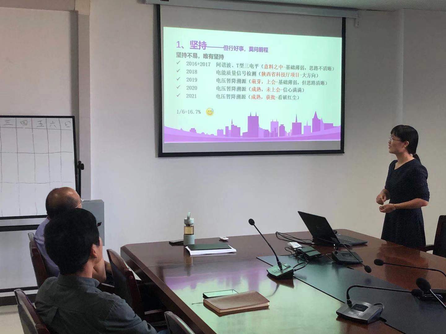 为了提高2022年度国家自然科学基金申请书质量,总结过去一年的基金申报工作。本着“早准备,早动笔,早审核”的原则,银河集团官网于2021年9月29日下午召开“国家自然科学基金项目申请书撰写经验交流会”。本次会议在综合楼1301会议室举行,会议特邀请电网信息与控制工程系2021年国家青年基金获得者尹建宁、邓亚平老师分享基金申报经验。出席会议的有同向前教授、段建东教授,会议由电网信息与控制工程系科研主任杨磊老师主持。