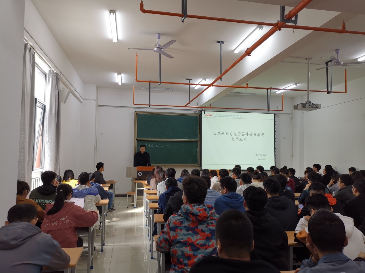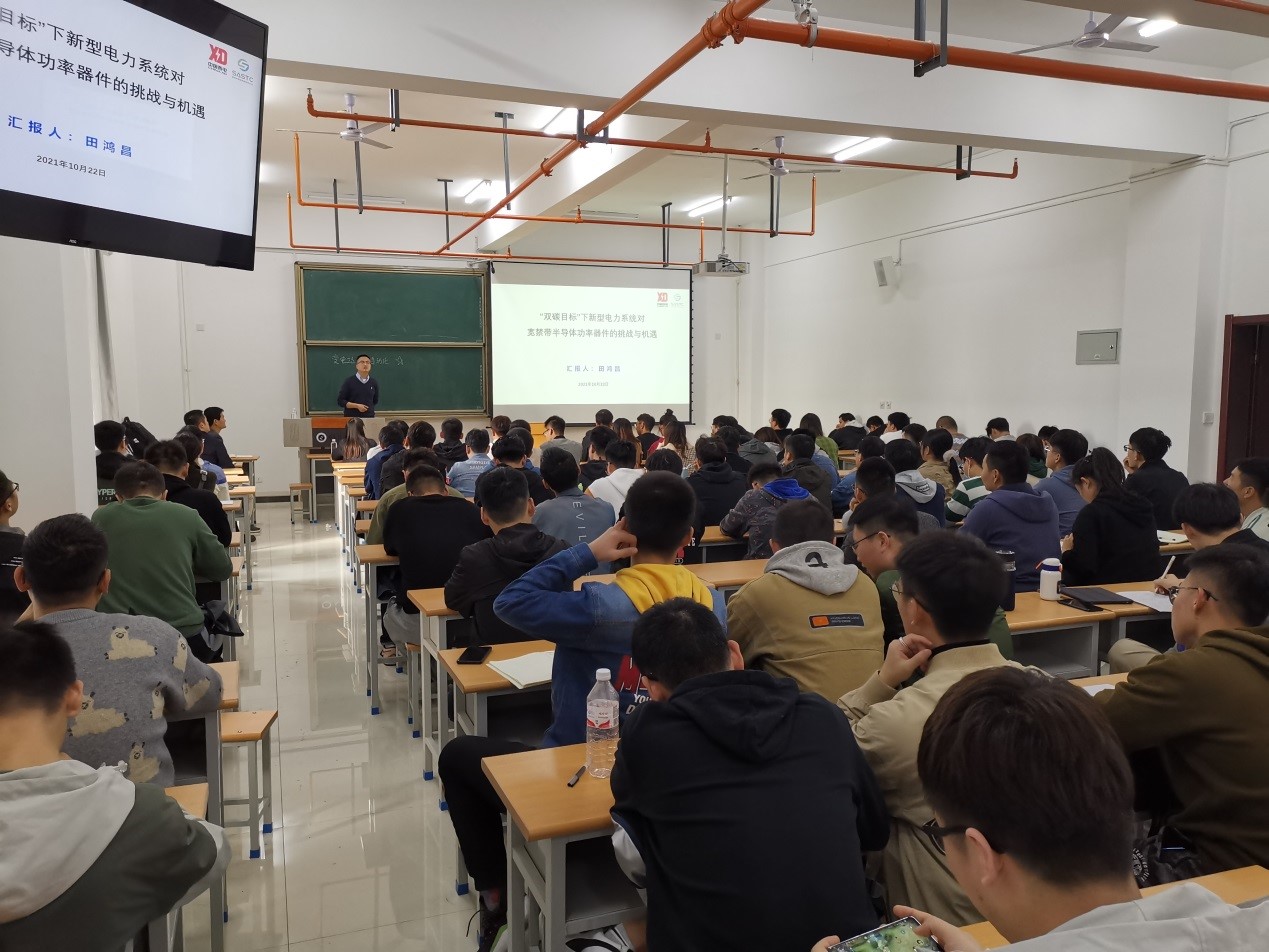 2021年10月22日,公司在银河集团官网曲江校区举办了电气工程教育暨研究生学术年会专家报告会,特邀西安电力电子技术研究所高级工程师张琦博士和陕西半导体先导技术中心技术副总监、西电电力系统有限公司高级工程师田鸿昌博士为师生做了关于新型电力电子器件发展与应用的学术报告。报告会由电气工程学科带头人同向前教授主持,参会师生约300人。