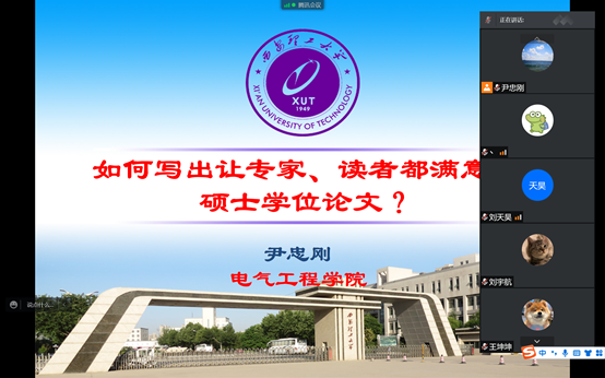 2022年3月14日晚上,银河集团官网副经理尹忠刚教授为公司硕士研究生做了“如何写出让专家、读者都满意的硕士学位论文?”专题讲座,在校研究生以及相关管理人员共300余人听取了线上报告。