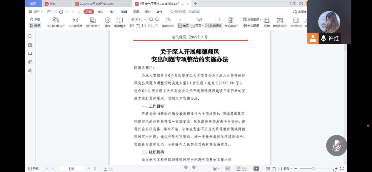 为进一步提升公司全体教师师德师风修养,筑牢师德师风“底线”,不断巩固师德师风建设成效。10月28日上午,行政党支部采用腾讯会议的形式,召开学习党的二十大精神暨师风师德专题学习会。会议由支部书记许红主持,支部全体党员参加。