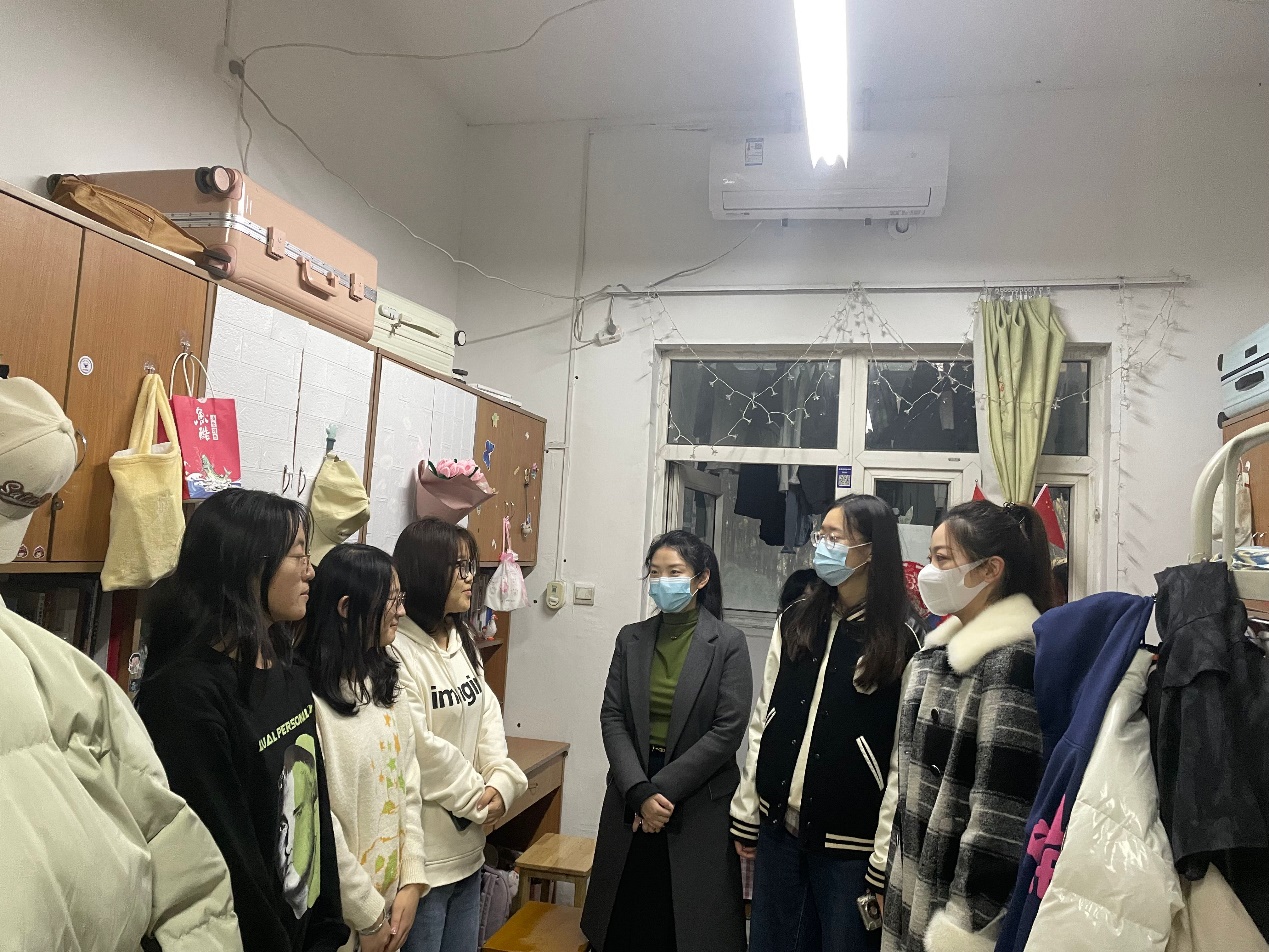 贾嵘一行走进研究生宿舍,与同学们进行了亲切交流,详细询问同学们近期的学习科研情况和生活状况,表达公司对同学们的关心,并对宿舍卫生和用电安全进行检查。他叮嘱同学们近期冷空气来袭,要注意保暖,预防季节性感冒,在学习科研的同时,注意自己的身体健康,有任何困难及时向公司反馈。他特别强调要加强个人防护,注意宿舍卫生和用电安全,杜绝使用违章电器。