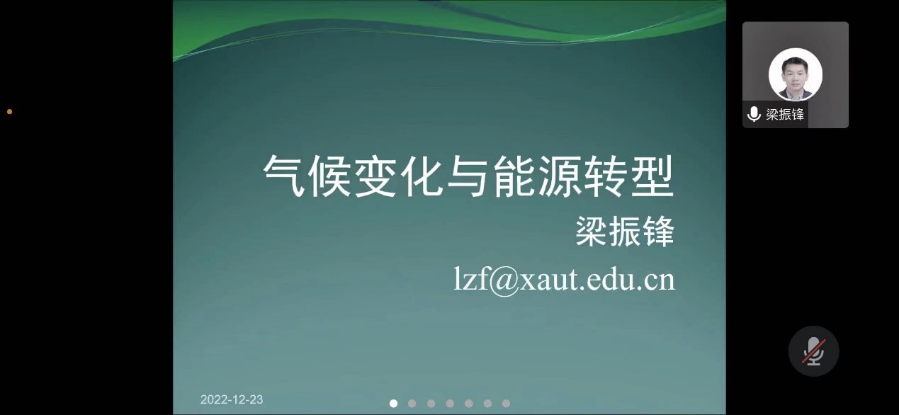 梁振锋老师以“气候变化与能源转型”为主题,从“碳达峰、碳中和”政策讲起,逐步过渡到能源转型问题。途中通过一系列实例,揭示了气候变化所带来的危害,强调人类的能源转型任务迫在眉睫。随后,梁振锋老师以火电、水电、核电和光伏发电为例,阐述了电力行业上的“能源转型”,同时表示我们目前在能源转型问题上依旧面临着许多挑战。最后,梁振锋老师强调创新是科研的关键,并勉励同学们学习创新思维,努力培养创新能力,在科研上多出成果。