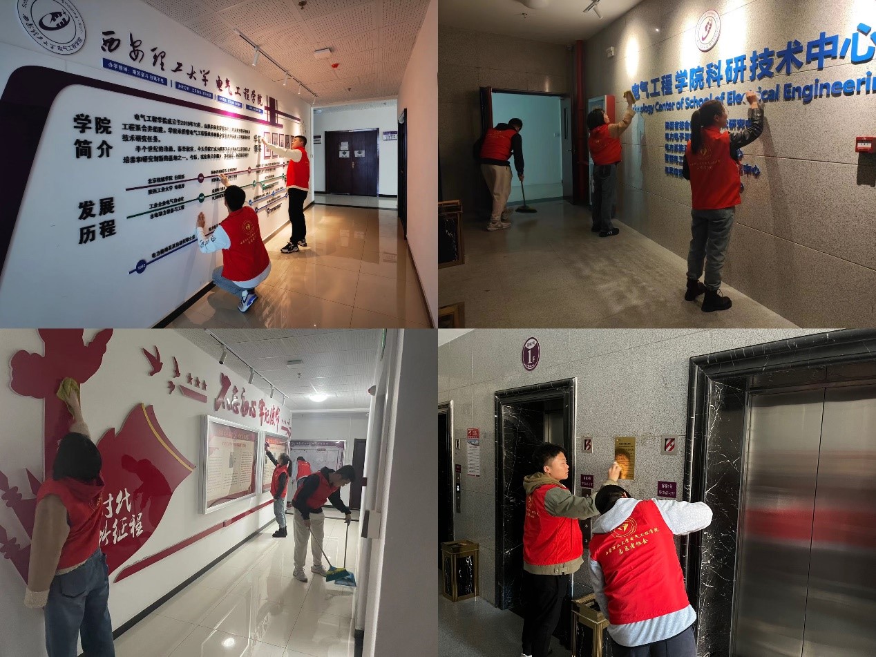 传承雷锋精神,从身边小事做起。本次志愿活动中,志愿者们组成小分队在公共区域进行卫生清洁,综合楼里闪耀着一道道美丽的“志愿红”。志愿者们通过劳动实践美化校园,营造文明和谐的校园环境,将雷锋精神播撒到校园的各个角落。