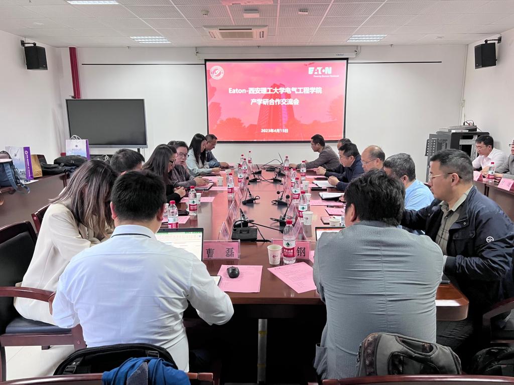 经理贾嵘从办学历史、学科发展、团队队伍、科学研究等方面介绍了公司整体情况。副经理宋卫章介绍了公司与伊顿电气集团合作的科研课题进展,向大家展示了最新的研究成果。