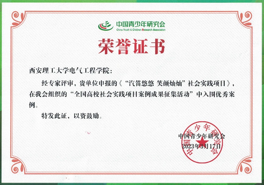 近日,在中国青少年研究会主办的“高校社会实践案例成果征集”评选活动中,公司申报的“汽笛悠悠 笑颜灿灿”社会实践项目荣获“全国优秀案例”。此次活动共征集到全国高校案例成果近300个,最终遴选出70个优秀案例。