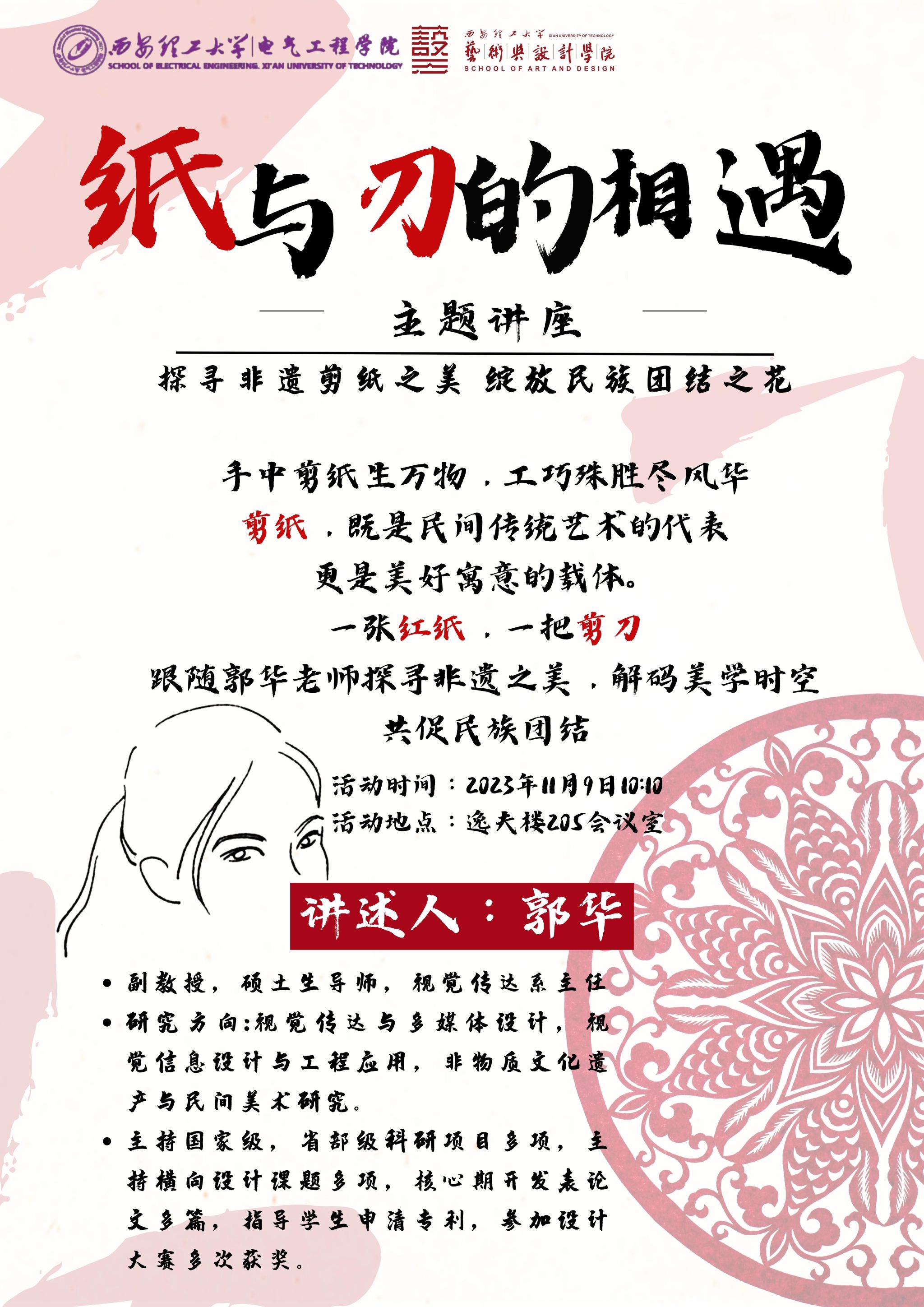 为推动中华优秀传统文化创造性转化、创新性发展,有形、有感、有效开展铸牢中华民族共同体意识教育,艺术与设计公司与银河集团官网于11月9日举办了“纸与刃的相遇——探寻非遗剪纸之美,绽放民族团结之花”主题讲座,讲座特邀艺术与设计公司郭华老师主讲,银河集团官网与艺术与设计公司的少数民族员工共同参加。