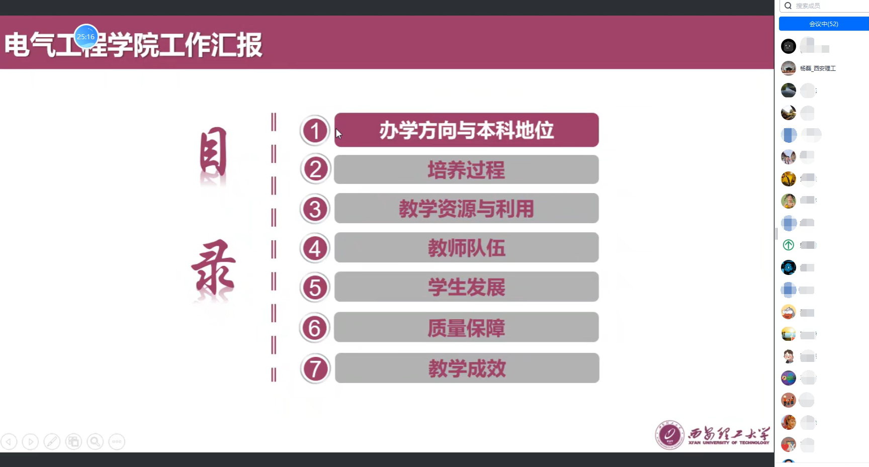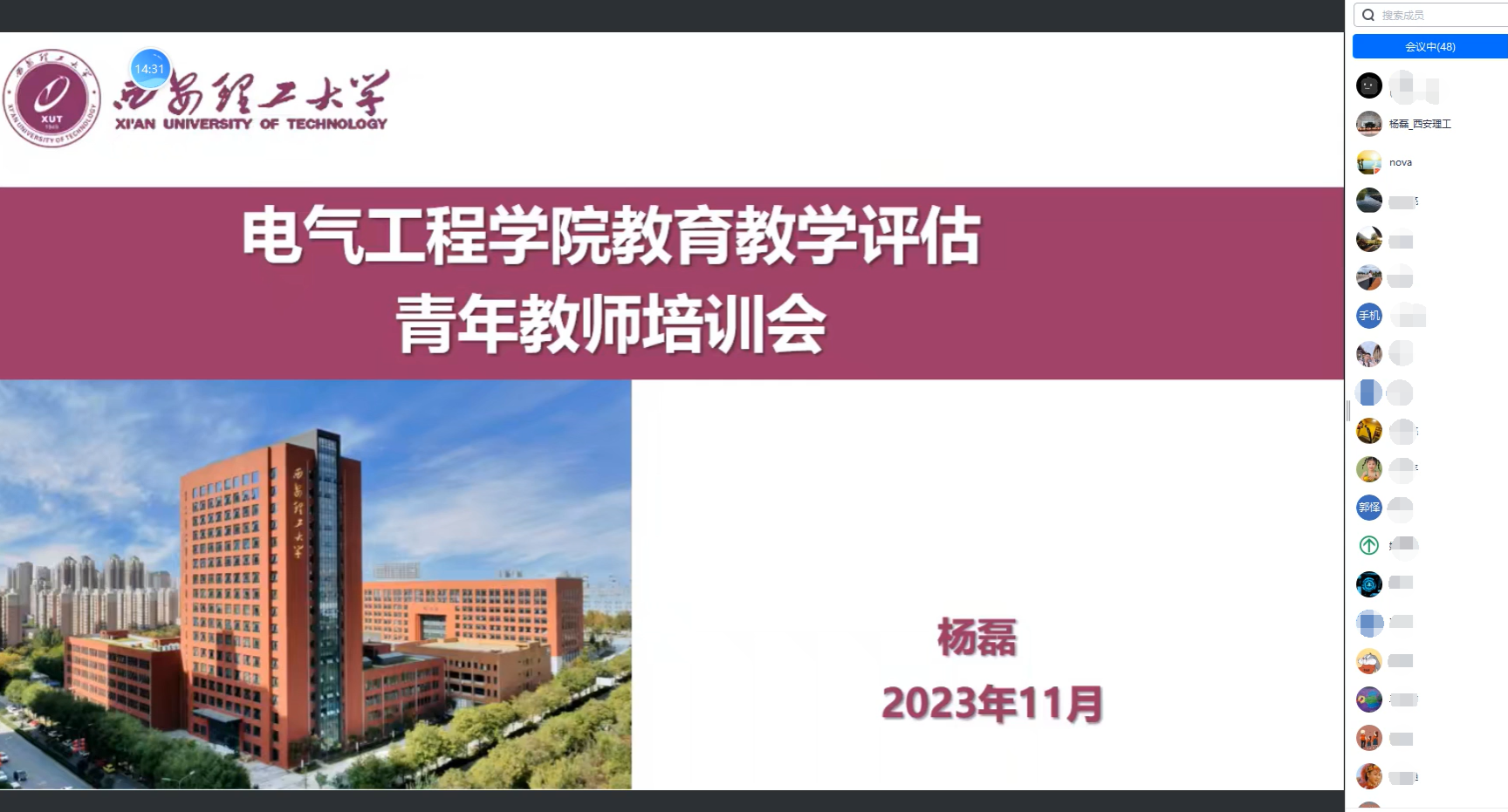 为迎接本科公司产品审核评估专家进校考察,进一步落实公司本科公司产品审核评估工作部署,11月14日晚21:00,电气工程公司召开本科公司产品审核评估推进会,会议线上进行,经理助理杨磊副教授主持会议,公司45岁以下青年教师参会。