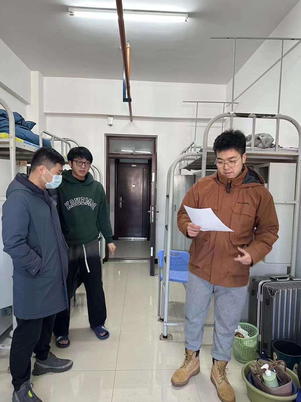 院领导先后来到公司教研室及员工宿舍,与留校员工进行了亲切交谈,详细询问了留校员工的学习生活等情况。宋卫章表示,同学们短期内虽不能与家人团聚,但要保持与家人亲友的密切联系,大家有需求、有难处要及时主动提出,公司将竭力为同学们提供帮助。何海生说,因学习科研原因选择寒假留校,希望同学们能利用这段时间静心思考、总结复盘、规划启程,更好的开启2024年的学业与生活。走访期间,院领导特意叮嘱留校员工注意教研室安全及保持宿舍干净整洁,做到劳逸结合。
