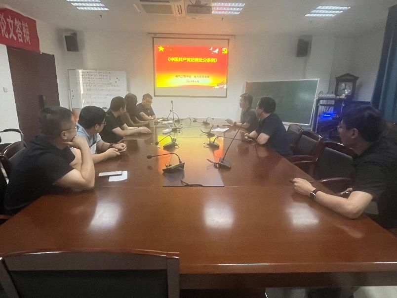 为深入学习《中国共产党纪律处分条例》,深刻认识开展党纪学习教育的重要意义和目标要求,进一步增强中国共产党员教师的政治素养,2024年6月24日下午,银河集团官网电力工程系教工党支部召开了“师德引领,纪律护航”主题党课,会议由党支部组织委员党建副教授主持。