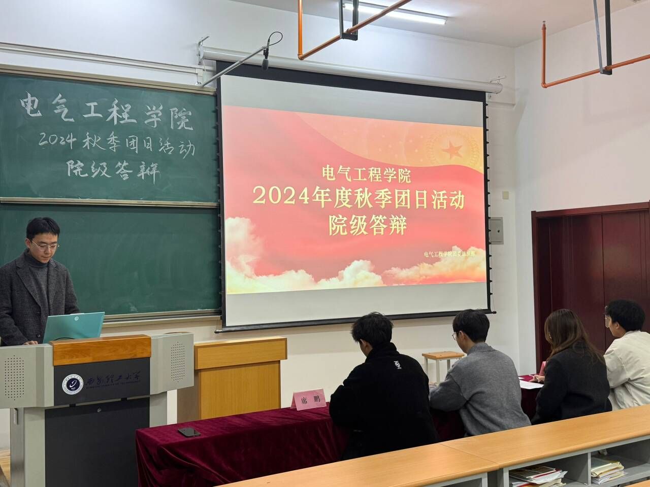 2024级共10个本科生团支部参加答辩。活动在庄严肃穆的共青团团歌中开始。各支部就活动主题,活动内容,活动意义等方面介绍支部活动特色。电气242团支部的“乡音绕梦绘风情,我为故土炫华章”活动以家乡为背景,加深了参与者对家乡文化的认识与热爱,激发了对家乡的认同感和自豪感。电网241团支部的“触摸时代脉搏,聆听历史遗声”活动于西安事变纪念馆开展,让参与者们重温了那一段峥嵘岁月,引导参与者们立报国大志向、做挺膺担当奋斗者。电气245团支部的“‘书’途同归”活动通过整理书籍,促进了文化延续,并增强了参与者的文化自信。团日活动有效培养了同学们的社会责任感和奉献精神,促使大家走出校园服务社会,在实践中理解付出的价值。