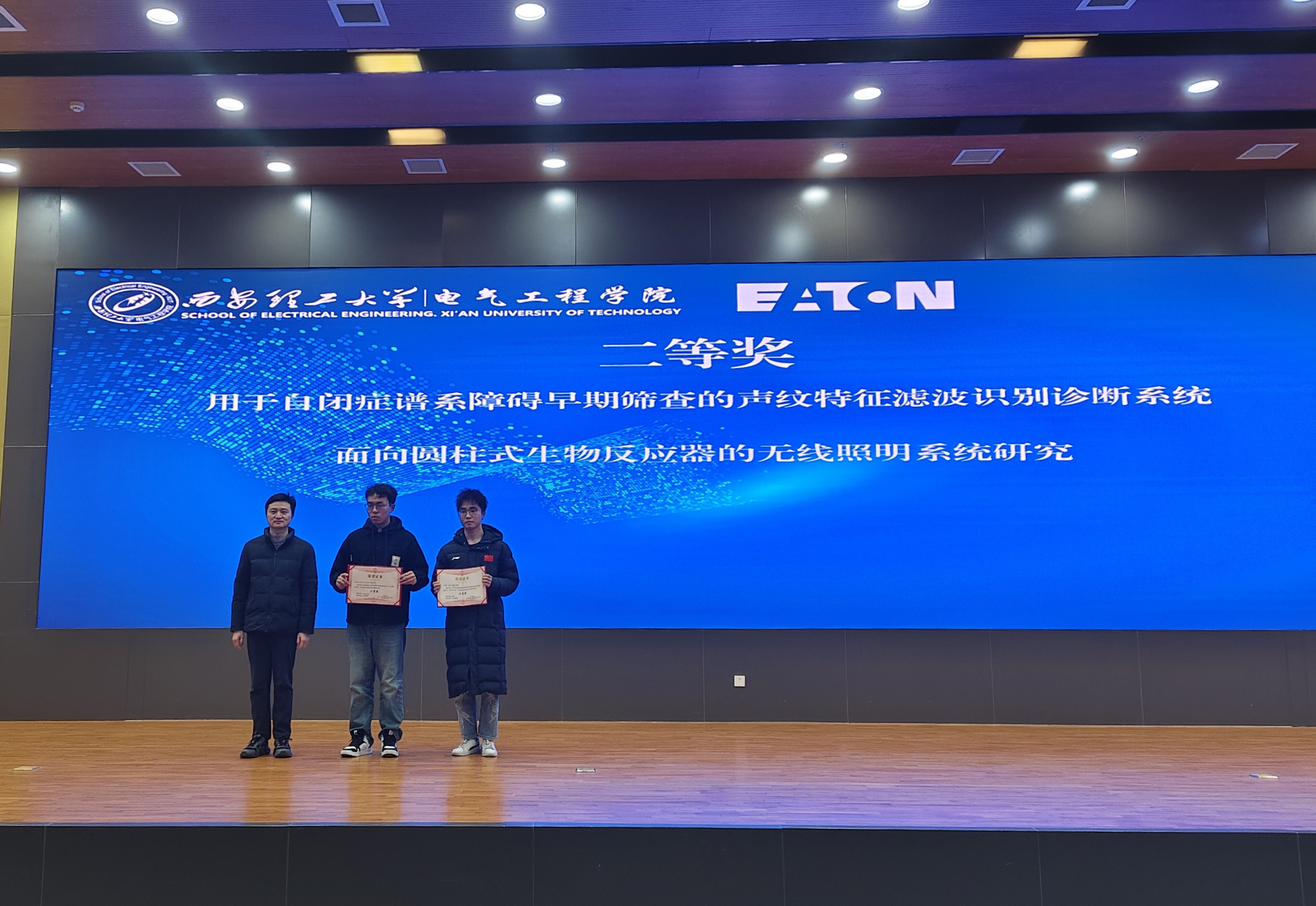 随后进入颁奖环节,“伊顿-擎电杯”老员工课外学术科技作品竞赛和电类专业优秀毕业设计(论文)大赛分别颁发了多个奖项,包括一、二、三等奖及特等奖,获奖师生代表等上台领奖。